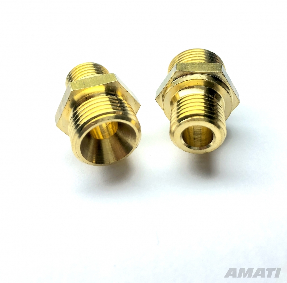 Nippel 1/4" x 3/8" im Kegel, Messing
