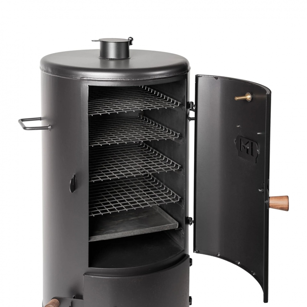 Der Rauchofen besteht aus zwei Kammern. Im unteren Teil des Ofens befindet sich eine Feuerstelle, in der Holz verbrannt wird, und im oberen Teil befindet sich eine Fleischkammer. Bei einem Doppelwandofen strömt der beim Verbrennen von Holz entstehende Rauch durch die Doppelwände und verlässt den Schornstein. Bei der Verwendung eines solchen Ofens ist es wichtig, zum Räuchern geeignetes Brennholz zu verbrennen. Der Rauch kommt nicht mit dem Fleisch in Berührung. Dies ist der sogenannte Heißrauchofen. In der oberen Kammer wird mit Spänen, Sägespänen oder Ähnlichem Rauch erzeugt.