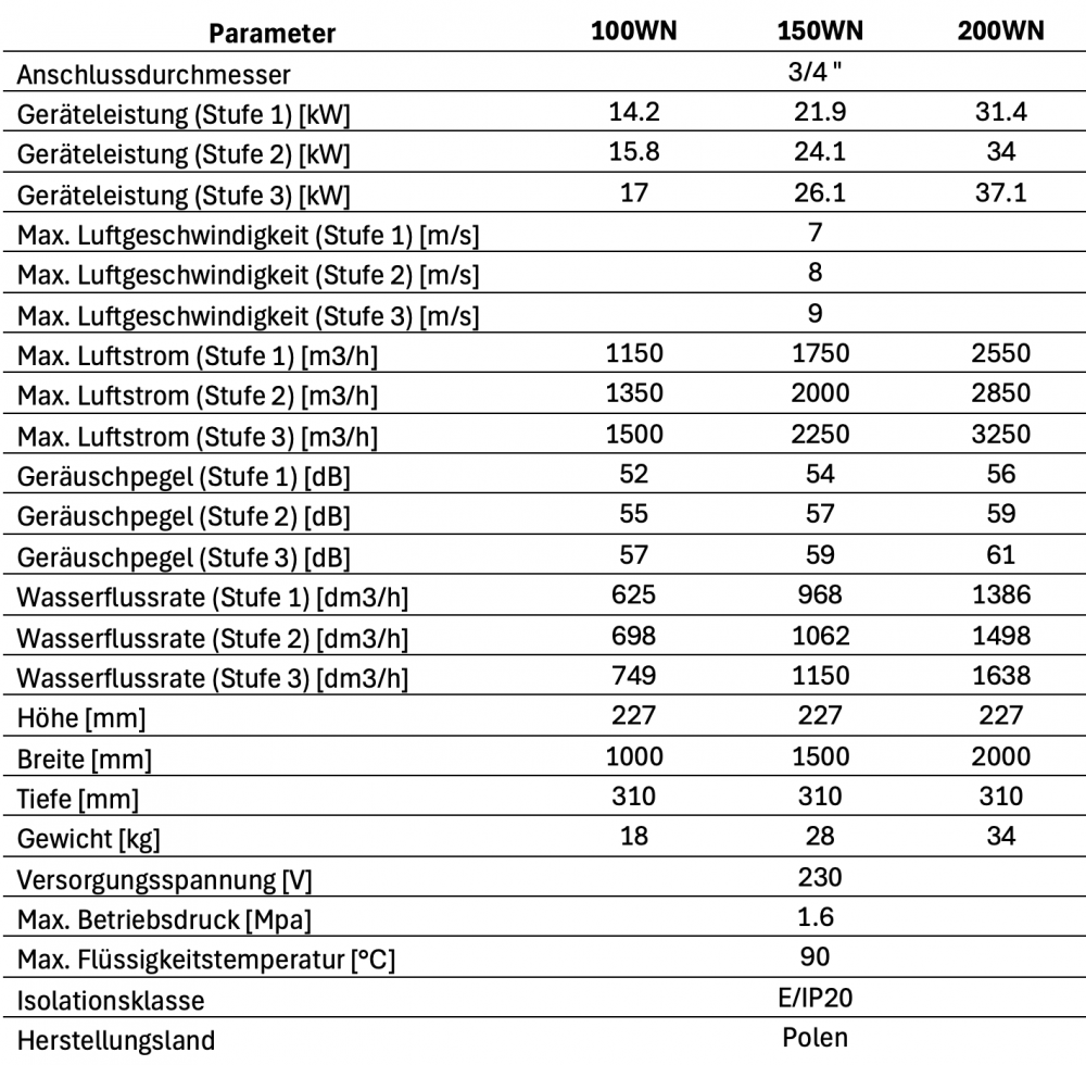 Reventon Aeris wasserbeheizter Luftschleier 1P 230V
