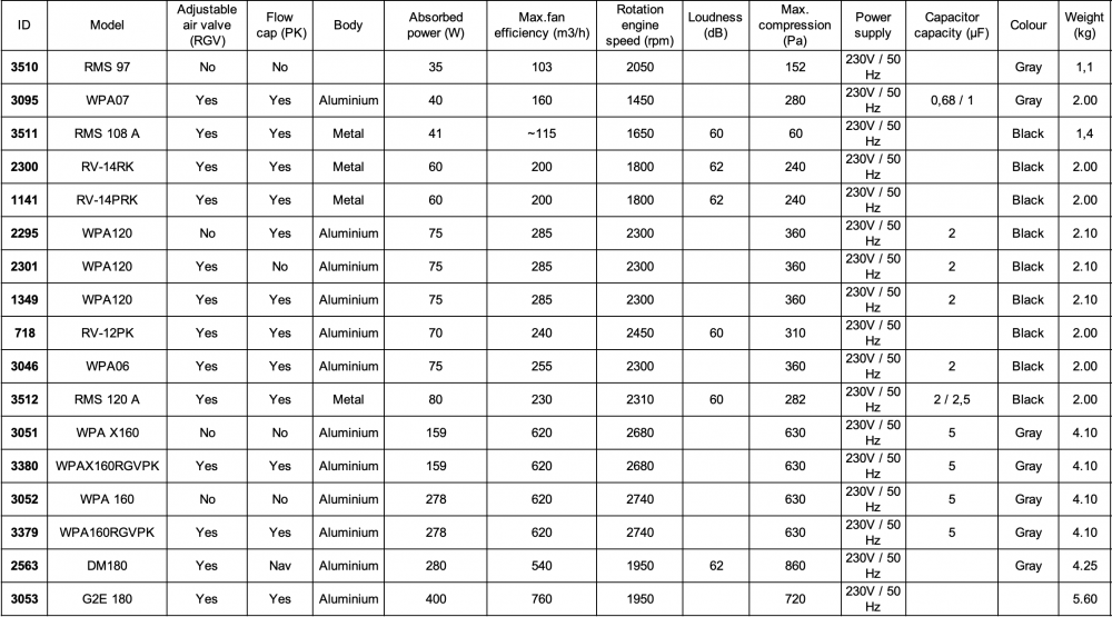 The table is created according to the air fans in stock. If you need to order a different one (with / without Adjustable air valve and/or Flow cap), contact us and we will find a solution. Please note that in this case the delivery time will be longer.