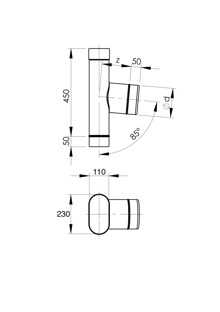 OVAL TEE 85° (110x230)