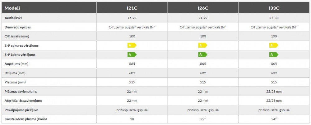 Kondensācijas Šķidrā kurināmā katls ar iebūvētu automātiku (Kombinēts /Iekštelpu) Warmflow I21,26,33C