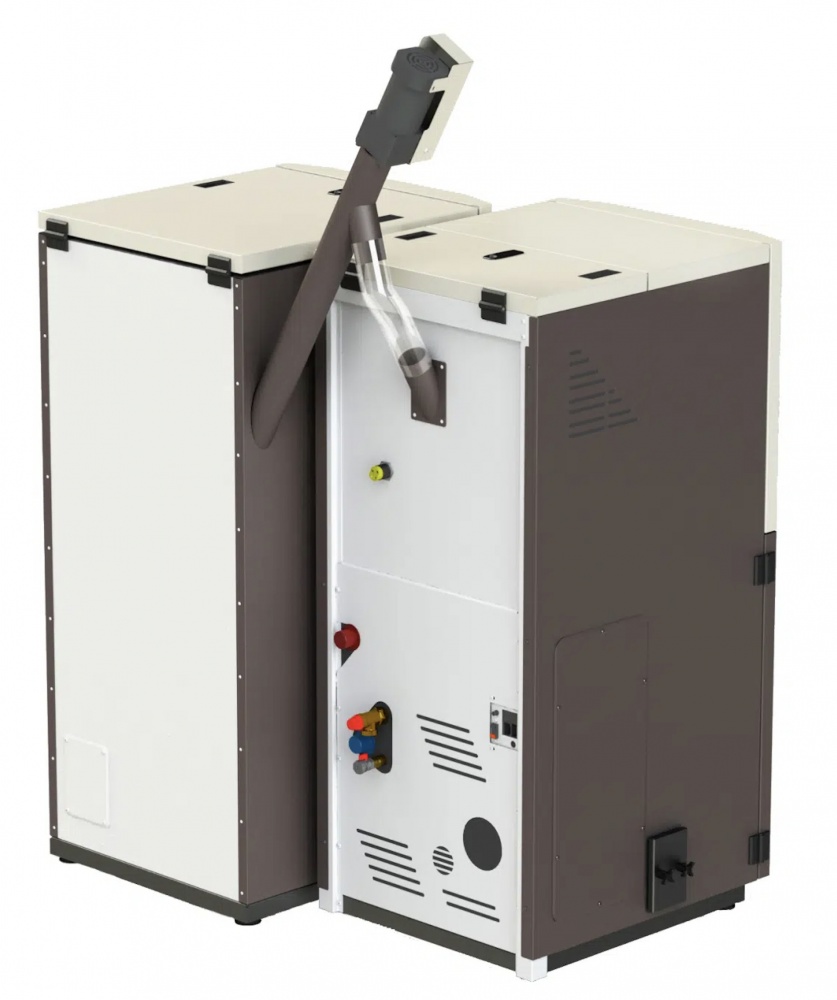 Kā vienu no iespējām mēs piedāvājam papildu lieljaudas granulu tvertnes (225 kg) pievienošanu.