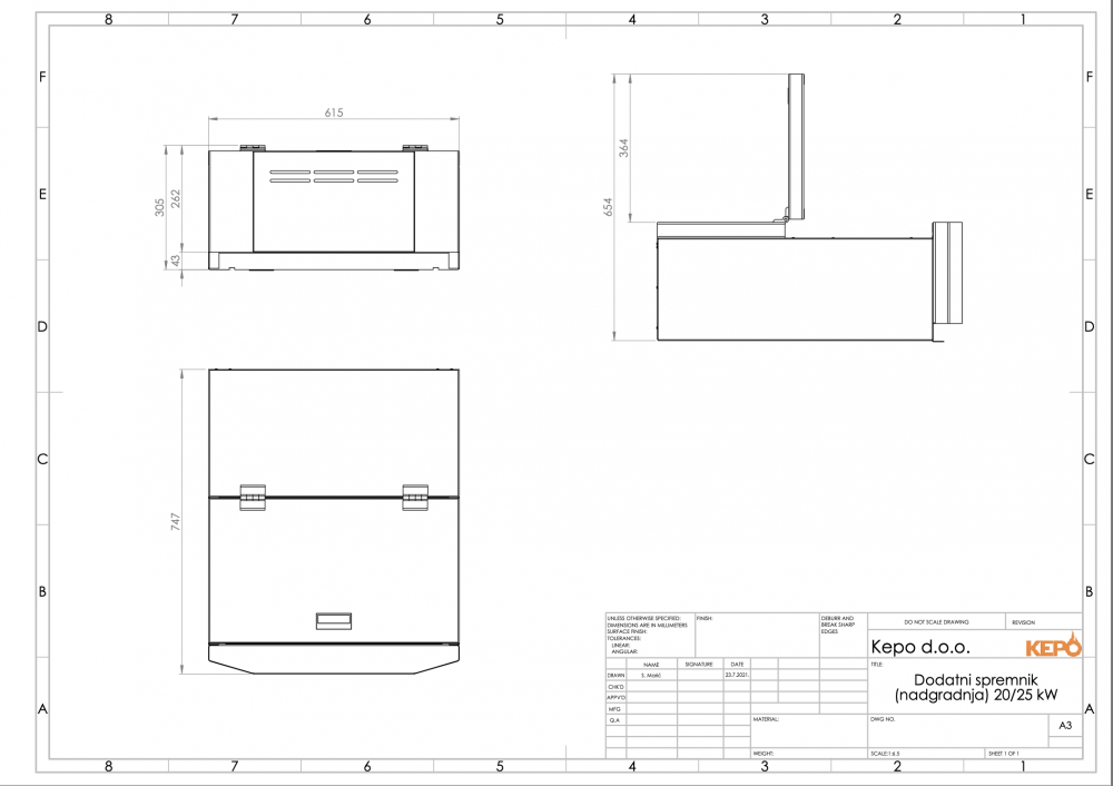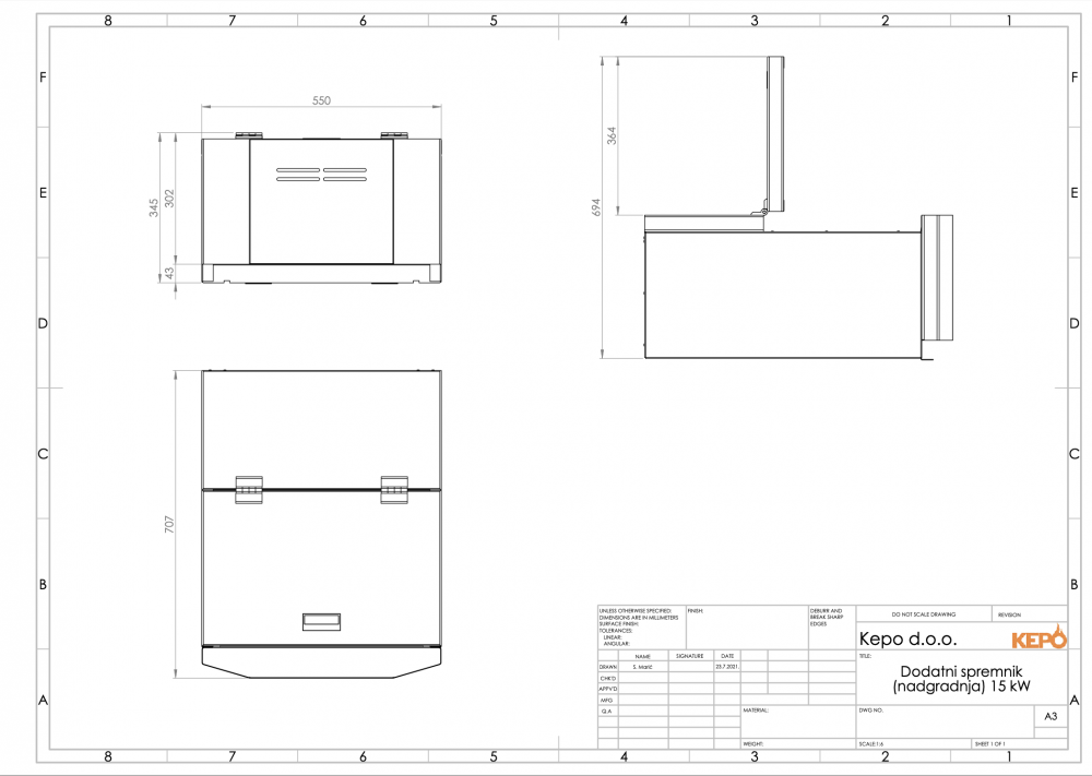 Granulu katlu KEPO papildus tvertnes: virsū uzliekamās 50 kg (72 litri)