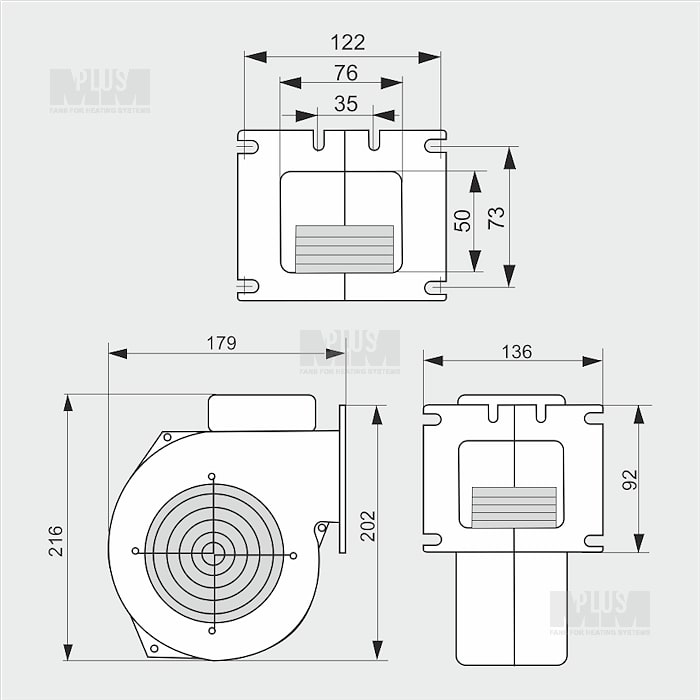 Pūšanas ventilators WPA120 ar regulējamu gaisa vārstu un plūsmas kappi