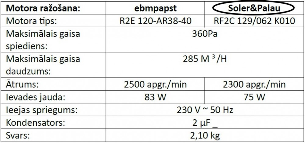 Ventilatora maksimālā efektivitāte: 285 m3/h