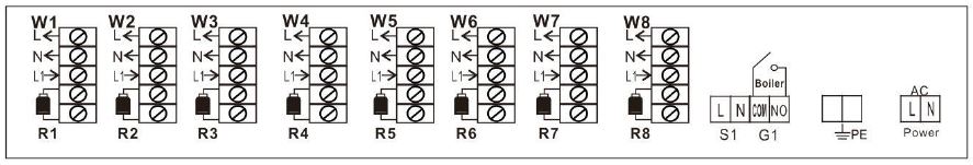 (TWC-08) 8 zonu vadības bloks telpas termostatiem ar releja kontaktu izeju