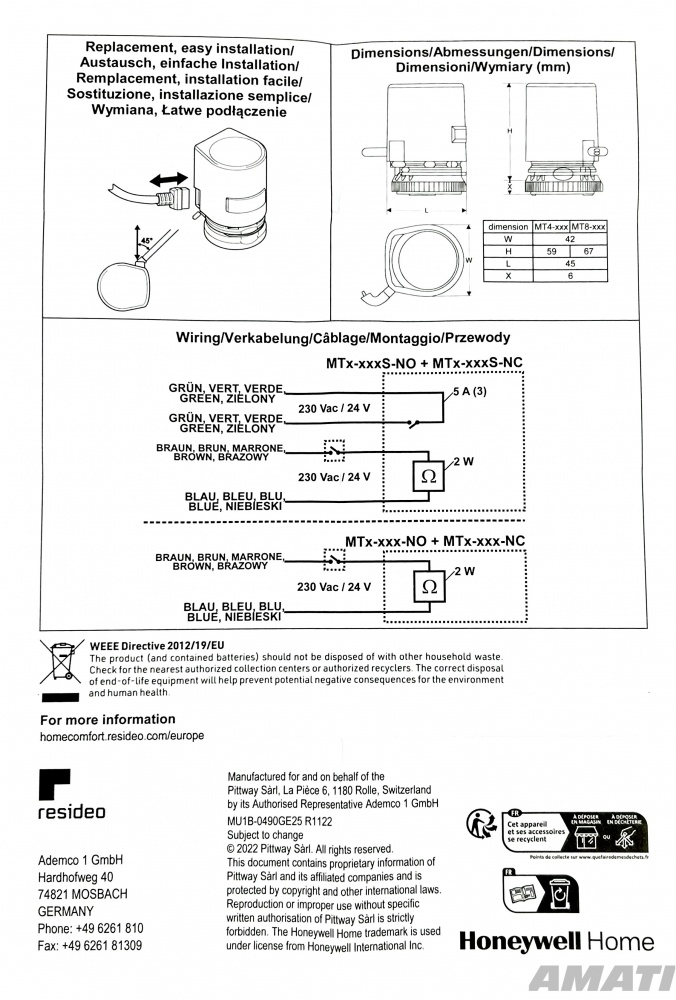 Honeywell Termoelektrisks izpildmehānisms MT4-230-NC