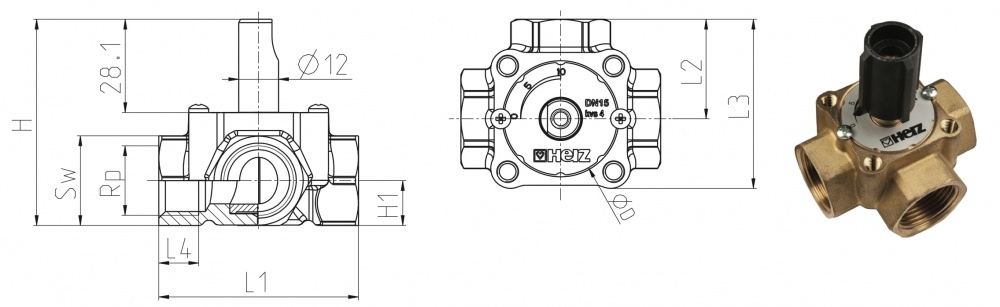 Trīsceļu vārsts ar rokturi HERZ 2137