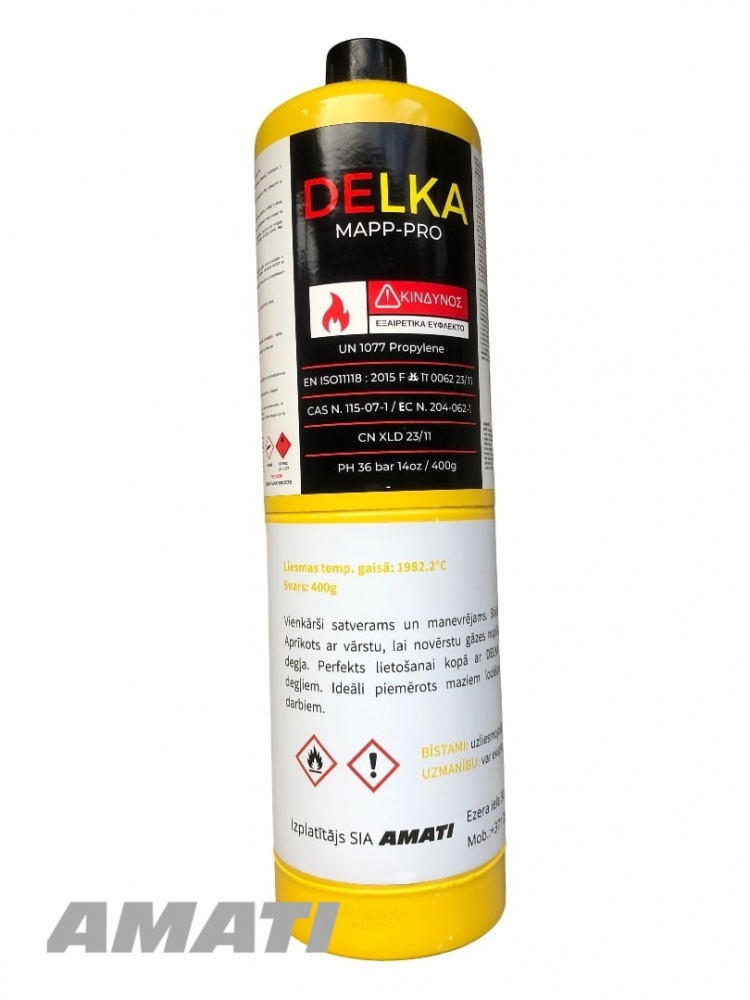 DELKA MAPP-PRO PROPYLENE rokas degļa cilindrs 400g (1982.2 C)