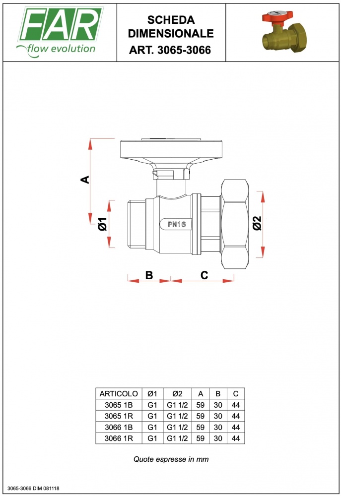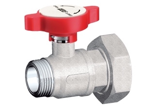 Hromēts lodveida vārsts ar sūkņa savienojumu temperatūras mērītājam, sarkans rokturis MF 1” x 1 1/2”