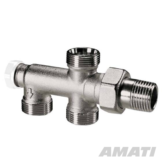 4 Ceļu sadalītājs dubultcauruļu sistēmām (100% plūsma), Eirokonuss ārējā vītne - 1/2" ārējā vītne DB 1405
