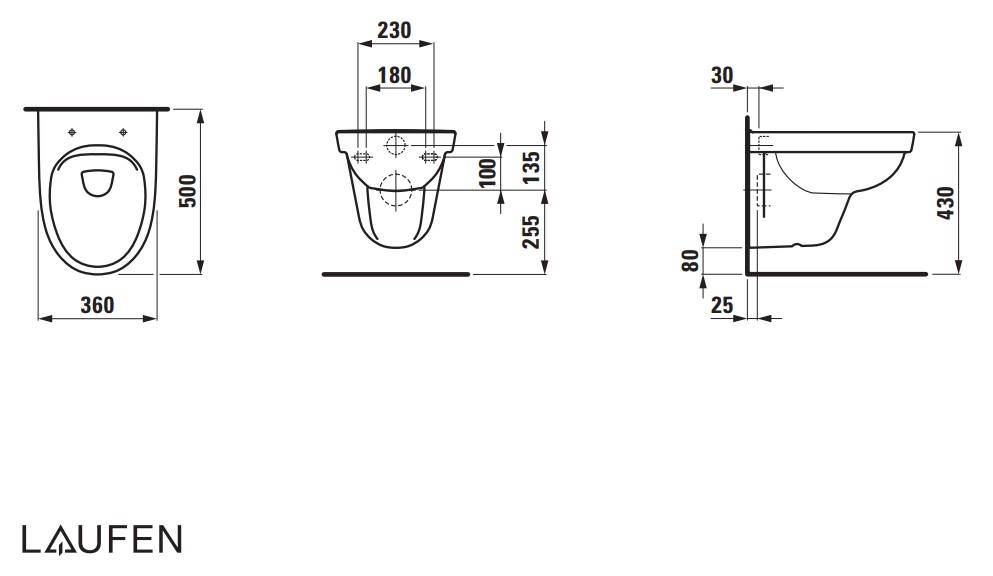 Pods Kompas Rimless ar QR/SC vāku, stiprināms pie sienas, 360x500 mm, balts