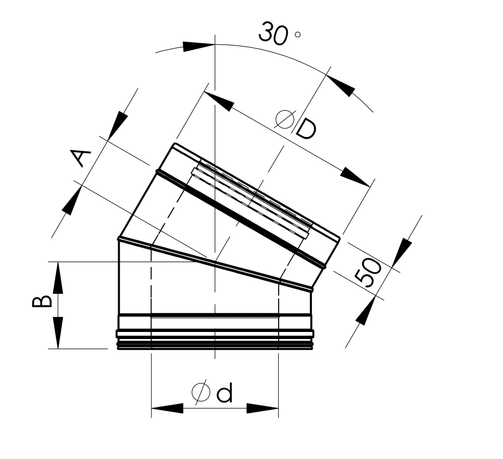 Dubultsienu izolētie dūmvadi (50 mm) no nerūsējosā tērauda