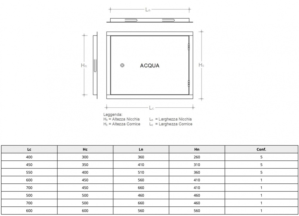 Paredzētas ūdens skaitītāju ievietošanai. Pateicoties rāmī esošajiem enkuriem, tās viegli uzstādāmas sienas nišā, kas paredzēta šim mērķim. 25 mm platais perimetra rāmis nosedz visas urbuma nepilnības mūrī.