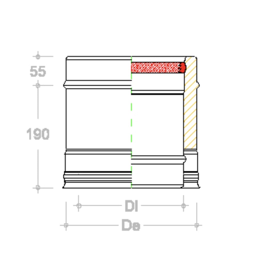 250 mm dubultsienu lineārais modulis ir pamatkomponents skursteņa sistēmas vertikālo vai subhorizontālo daļu strukturēšanai saskaņā ar UNI EN 1856-1.