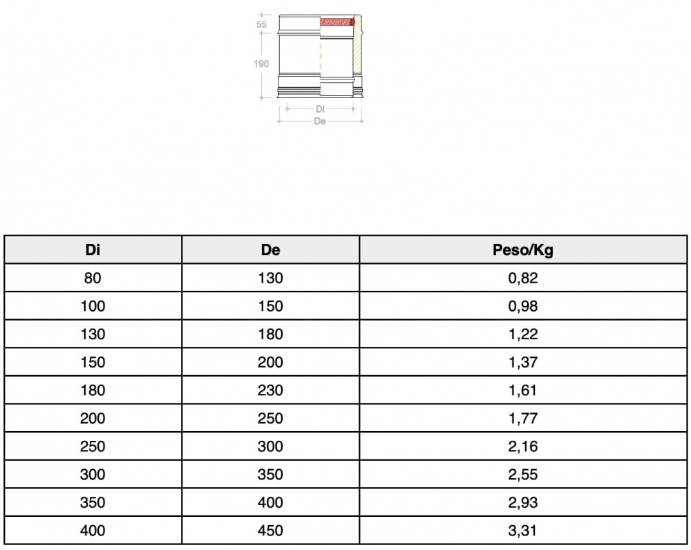 • Iekšējā siena: Nerūsējošais tērauds 316 BA (EN 1.4404 - L50) biezums mm 0,5.