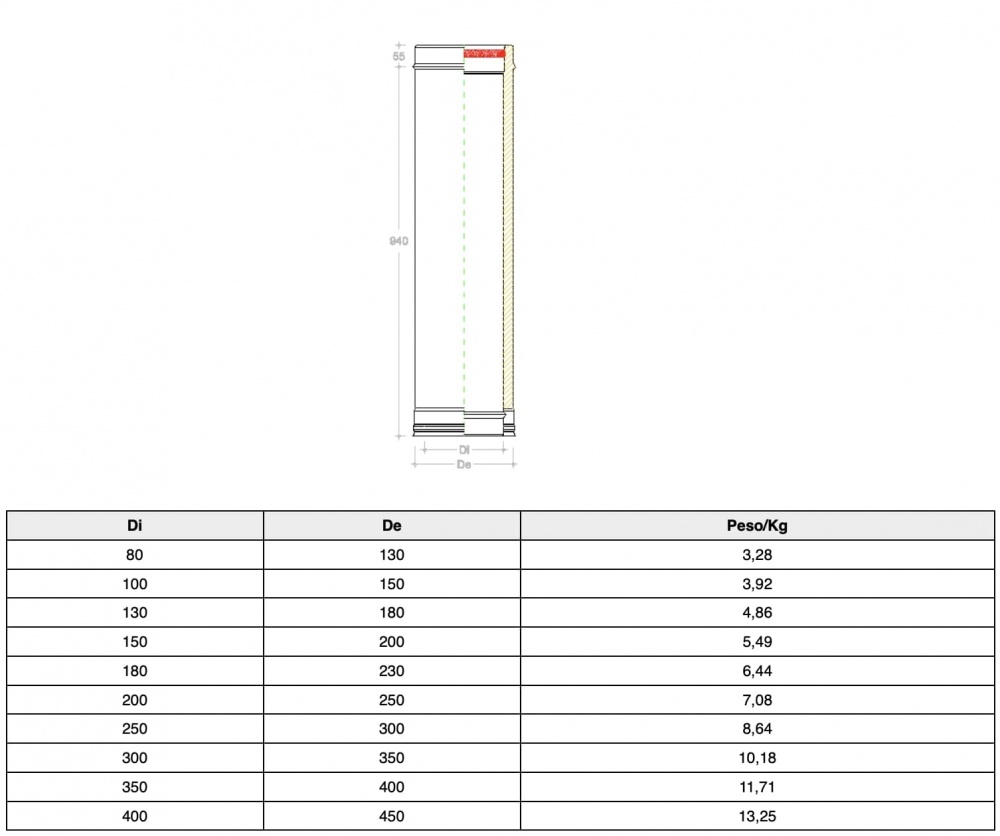 250 mm dubultsienu lineārais modulis ir pamatkomponents skursteņa sistēmas vertikālo vai subhorizontālo daļu strukturēšanai saskaņā ar UNI EN 1856-1.