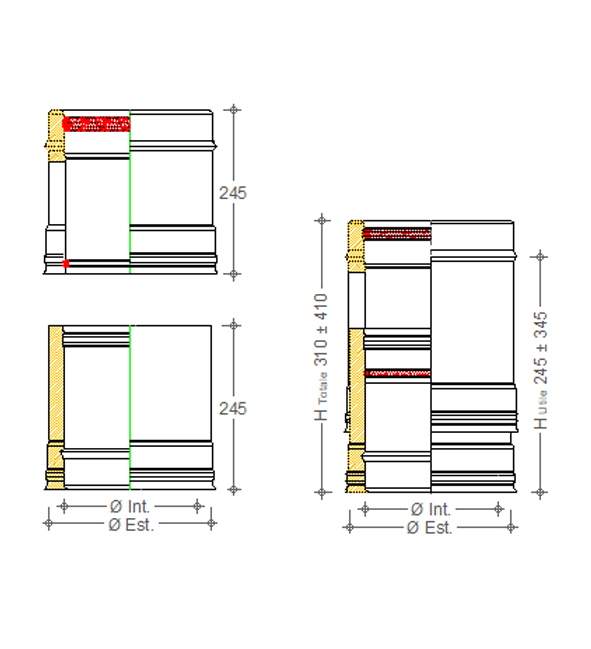 To izmanto, lai savienotu anomālas dažāda garuma dūmvada daļas. Tas nav noslēgts elements, to nevar izmantot, lai izveidotu skursteņu sistēmas, kas atbilst UNI EN 1856-1.