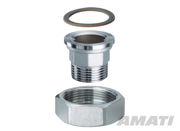 Hromēts savienojuma komplekts sūknim komplektā ar uzgriezni un blīvi.