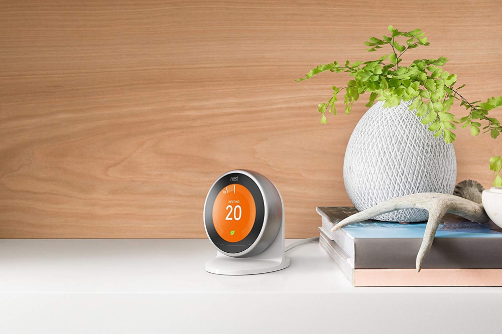 Nest Stand ir izvēles aksesuārs, kurš pārdodas atsevišķi. Tas ļauj novietot Nest termostatu uz plaukta un galda - ne tikai pie sienas. Nest Stand darbojas ar USB strāvas kabeli un strāvas adapteri.